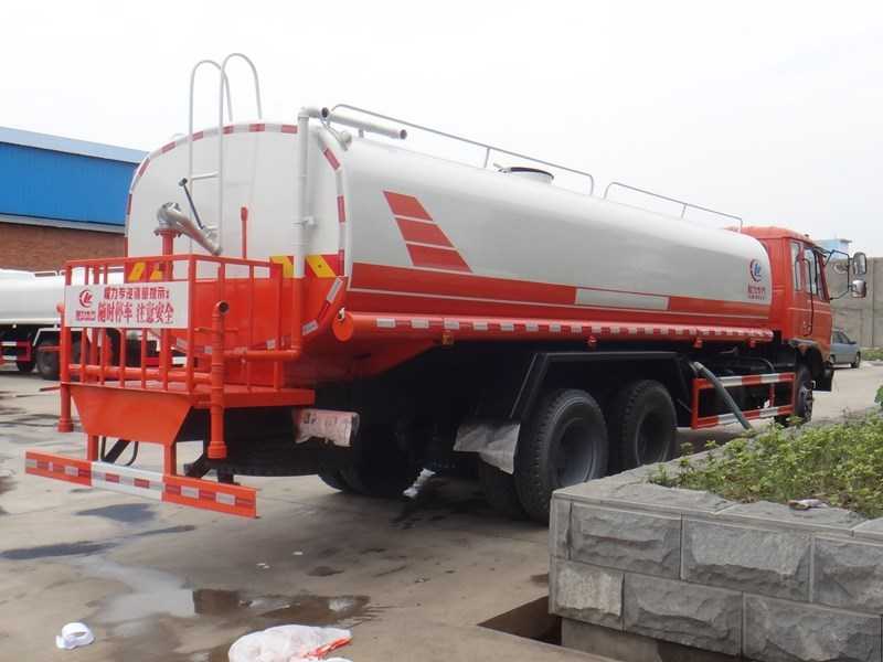 改裝配置:罐體采用5mm厚武鋼專用容積板制作,實際容積20立方,大功率專用灑水泵,采用國際領先技術、使用方便快捷,比同類灑水泵壓力大、吸程遠、使用壽命長,克服其他灑水泵易被雜物纏住、壓力小、吸水慢的缺點;前沖(噴)后灑,帶側噴,罐體后帶工作臺,平臺上安裝綠化灑水炮。灑水炮可全方位旋轉,可連續調成直沖狀、大雨、小雨、毛毛雨;罐體有效物理容積大,一次作業時間長,無須頻繁加水,工作效率高;電、液、氣集中控制,整車具有良好的人機操作界面,操作方便靈活,駕駛員可在駕駛室內完成各種動作的操作,操作安全、舒適;罐體焊接全部采用CO2氣體保護自動焊接,焊機質量可靠,外型美觀,罐體的截面形狀為橢圓形,內部制造成多倉室結構,各個倉室用隔板(防波板)隔開。隔板與罐體之間采用焊接剛性連接形式;.罐體頂部開有人孔。人孔既可以作為工作人員進行罐內檢修的進出口,也可以作為加水孔用于向罐內加注水。用戶可選裝消防大功率消防水泵、應急時可做消防灑水車使用。