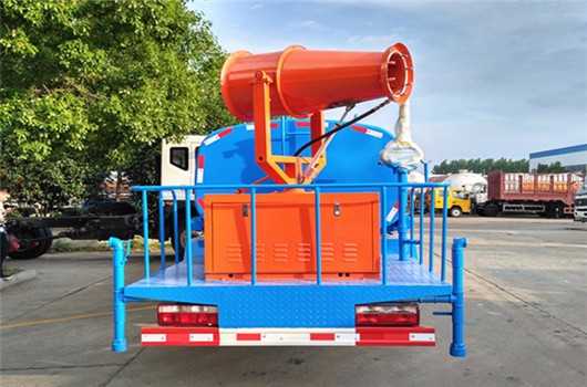 上裝配置:罐體容積為 8立方多功能抑塵灑水車(chē),風(fēng)送式霧炮機(jī)射程30米/40米,罐體鋼板為4mm碳鋼Q235材質(zhì),罐內(nèi)隔板具有防波作用,以減輕汽車(chē)行駛時(shí)罐體液體沖擊,罐體及整車(chē)外形尺寸按照公告。帶大功率專(zhuān)用灑水泵,泵可自吸自排,整車(chē)前沖、后灑、側(cè)噴、帶65消防接口,后平臺(tái)配CLW-30/CLW-40型風(fēng)送式霧炮機(jī)組;汽油/柴油發(fā)電機(jī)組;遠(yuǎn)程遙控系統(tǒng)控制;霧炮自動(dòng)旋轉(zhuǎn)角度0-360°。后平臺(tái)帶綠化灑水炮,灑水炮可全方位旋轉(zhuǎn),可連續(xù)調(diào)成直沖狀、大雨、小雨、毛毛雨;前封頭帶水位計(jì),后平臺(tái)主管路帶1寸澆花接口,后爬梯。平臺(tái)后部帶小安全告知牌:“隨時(shí)停車(chē),注意安全”,帶兩根水管及陰陽(yáng)端。罐體顏色:白/蘭/綠,罐體兩側(cè)噴“灑水車(chē)、綠化噴灑車(chē)”字樣,貼反光標(biāo)示。